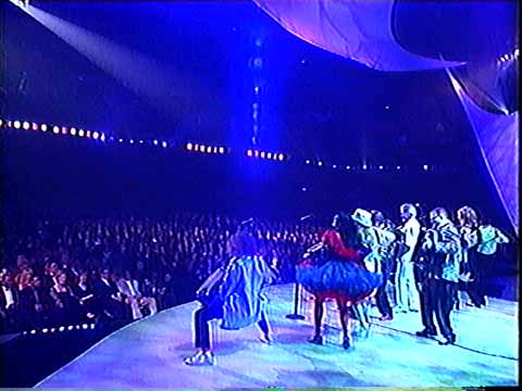 The day TDA! left for Los Angeles, Clyde got sick and had to spend a couple of days in the hospital. We kept in touch with him while in L.A., and Clyde's doing much better now. We all waved to him at the end of the number. Clyde asked me to let everyone know that he's looking forward to getting back on stage with TDA! His thoughts on the AMA: "Well, TDA! was great, but the rest of it, I didn't like much. You know, music has deteriorated a lot since my day. Nobody sings anymore. There's no damn melody!" Good to see Clyde is back in fine form! We love ya!