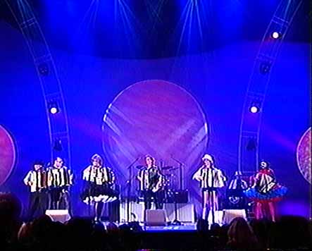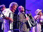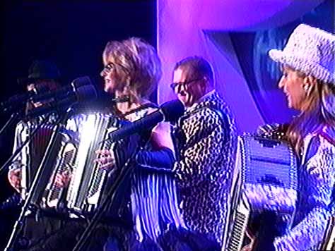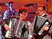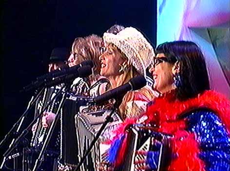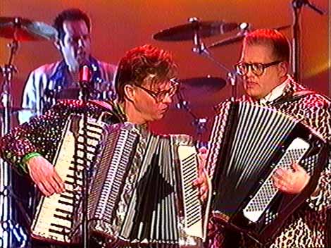 AMA host Drew Carey had the idea of getting a bunch of accordionists to play a tribute to past American Music Awards "Song of the Year" winners. Drew was a fan of TDA!'s version of the "Perry Mason Theme," which was released on a Rhino Record's compilation CD called "Legends of the Accordion." (The song is also available on TDA!'s first release, "Vongole Fisarmonica.") Dick Clark Productions contacted me about Drew's idea.