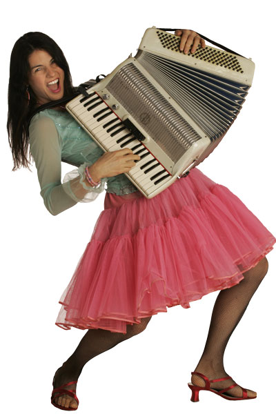 Born and Raised: Born in San Francisco, I was part of an average middle class family until I was 10, when my parents embraced the counter cultural revolution and became middle class hippies. That was the year I named my cat “Tiva” (short for Cannibas Sativa….). Dad worked as a DJ and would get fired every couple of years and so we lived all over the place; Sausalito/CA, Denver/CO, Kansas City/KS, Boise/ID, San Rafael/CA, Eugene/OR, Petaluma/CA, Corte Madera/CA, and Fairfax/CA. Instruments Played: Accordion, Piano, and Guitar Favorite TDA Song to Perform Live: Right now it is Tinkle Town polka, because in playing that song, the purpose of my life seems clear, and everything that has happened to me up to now, that brought me here to this place to be singing this song on stage….. well, it all just seems to make sense. The other one is Whole Lotta Love because I get to use every one of the rock poses I learned from the masters over my years touring with famous rock stars. Start With TDA: Paul asked me to join when Patty decided to move to Hawaii. My career trajectory had pretty much reached it’s pinnacle in the mid-90’s and since then had been on a long slow descent, so, joining TDA seemed like the perfectly natural thing to do at that point in time. Besides, I had wanted to learn the accordion, and had even purchased one, but there is nothing like an actual gig coming up to make a girl practice! First Started Playing Music: As a kid, I hated piano lessons and didn’t stick with them long. Later I got a guitar and really enjoyed bashing the hell out of Beatles songs. I ended up teaching myself chords on piano, so I could bash out songs on that instrument as well and here I am! Other Bands (Past or Present): I streaked a Tower of Power set at the Oakland Coliseum at the age of 15, but I don’t know if that really counts. Fortunately I managed to find more legitimate outlets for my talents. I started playing with bands in 1986. My most famous unsigned San Francisco band was the Confessions back in the 80's. In 1984 I was asked to join Sheila E's band and we went out on tour as the opening band for the Prince's Purple Rain tour. Quite fun. I went on to tour with Van Morrison (‘86) Billy Idol (‘87) Belinda Carlisle and Mick Jagger (‘88) Deborah Harry (‘89) Sinead O'Connor ( ‘91) Melissa Etheridge (‘92) Jude Cole and Go West (‘93) Daryl Hall (‘94) Pat Benatar, (‘95, ‘98 and ‘99) Mylene Farmer and Kaviar (‘96). In 2002 I joined the Rubinoos and Rhythmtown Jive. In 2003 I joined Those Darn Accordions Now for the bands no one remembers: Vita Rationale, The Screaming Tiger Marching Band, The Sneakers, Broadway, Boo Boo Fine Jelly, the Scarlets, the Love Dogs, Snow White Trash, and Scrap Pile. Favorite Band: The Band Favorite Road Food: Dr. Shultz’s Superfood in a jar mixed with tap water. Ummmm… Other Hobbies and Interests: Composting with worms. Other claims to fame include: